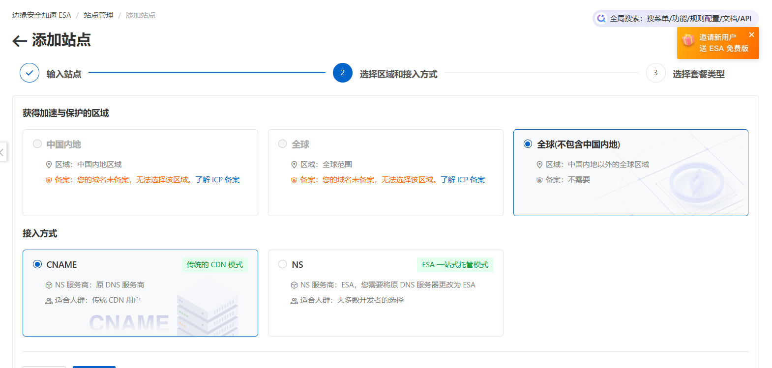 添加站点和域名接入也是和腾讯eo差不多,自己跟着步骤走就行