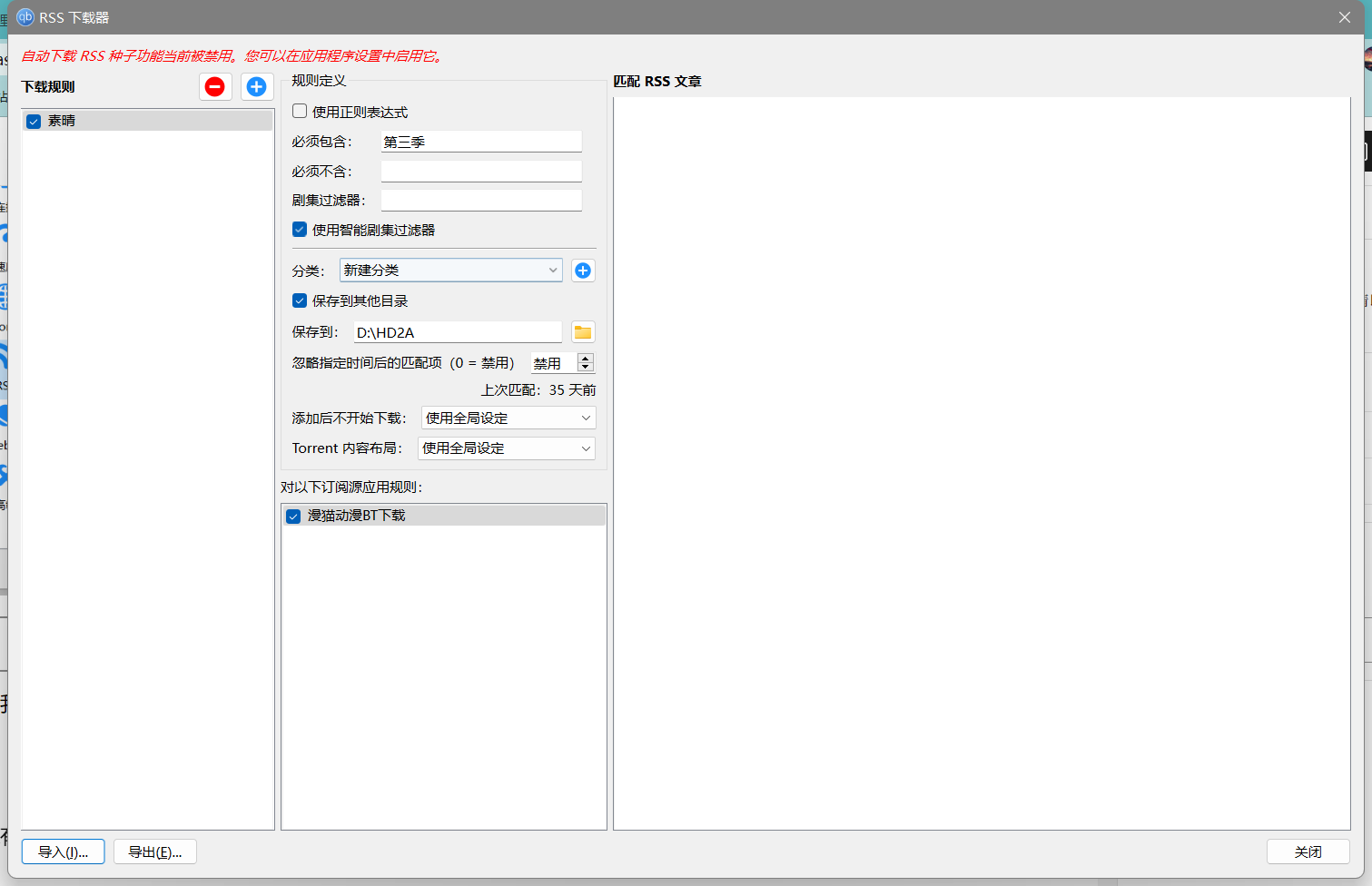 之后我们在设置里的rss这里启用rss订阅,下载的话路径你自己选就好了,然后启用rss自动下载就可,