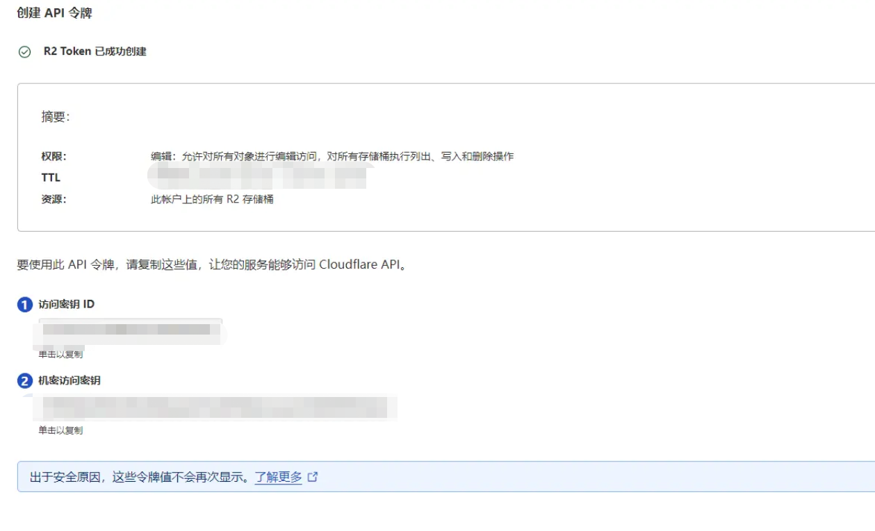 一直都很想白嫖r2的存储桶当图床用,它有免费的10GB存储,对于我这种孤岛小站来说肯定是够用了,所以我第一时间去开通了r2的存储桶,这一步也比较简单,主要是得记下自己的密钥id(Access Key ID)和密钥(Secret Access Key),地区那里我选择了亚洲地区的,域名就自定义一下