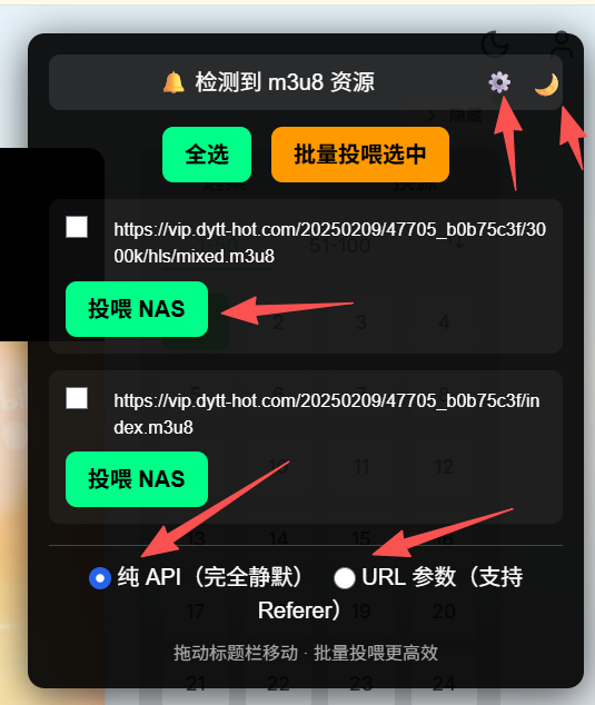 所以我添加了原来的url参数模式,在需要referer的视频的情况下,使用上面原来的URL 参数方式 + silent=true + Referer:*的方式去下载资源