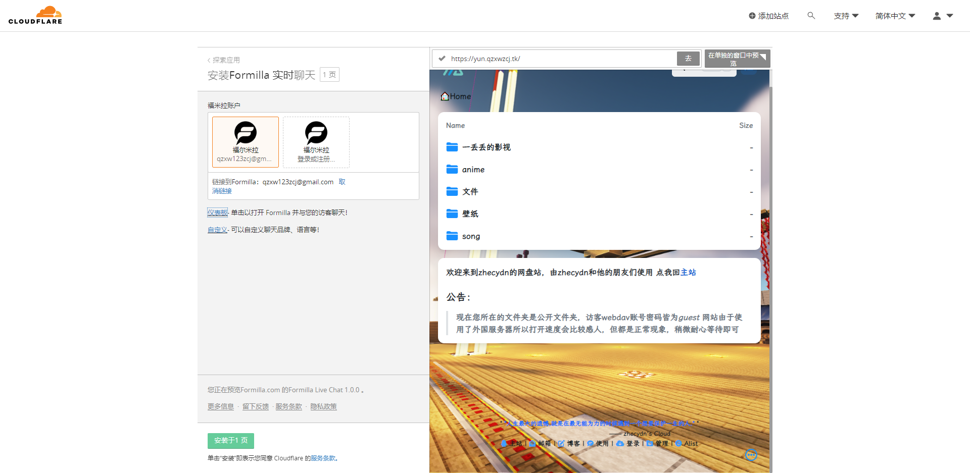 一切都依托于cloudflare本身,我今天部署的就是这个叫formilla的网页聊天客服